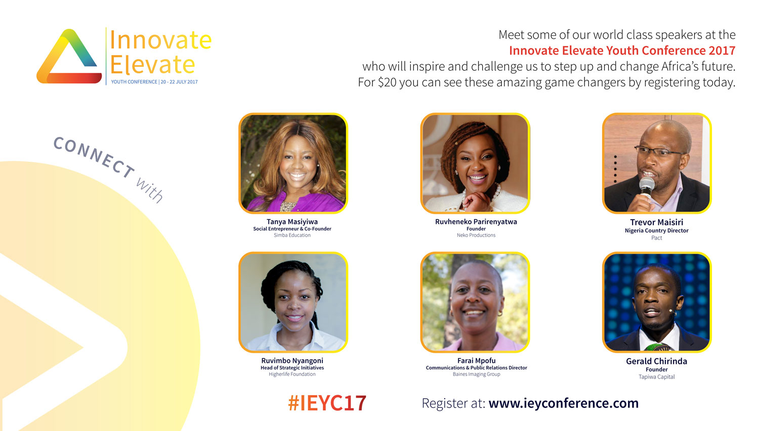 • Amazing speakers lined up to speak at the Innovate Elevate Youth Conference