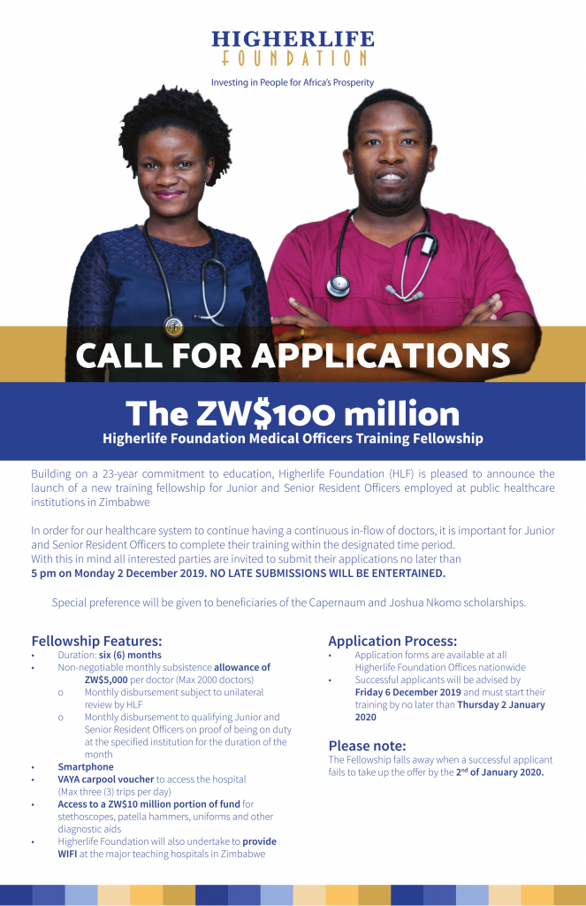 • Call for Applications: The ZW$100 million Higherlife Foundation Medical Officers Training Fellowship