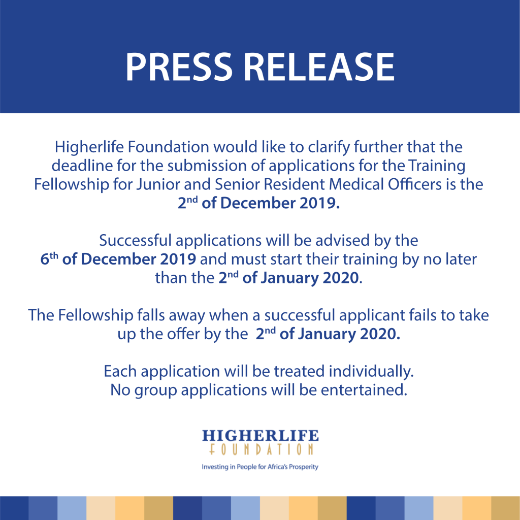 Call for Applications: The ZW$100 million Higherlife Foundation Medical Officers Training Fellowship